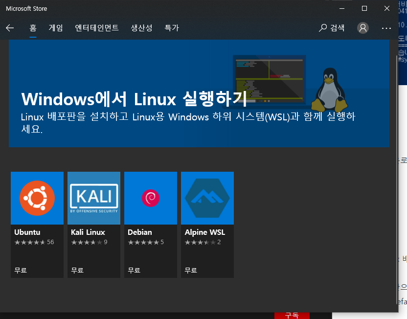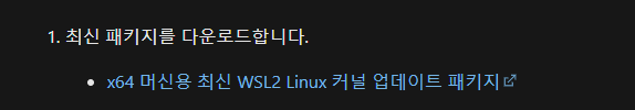 WSL 검색후 상단의 > https://docs.microsoft.com/ko-kr/windows/wsl/install-win10 접속