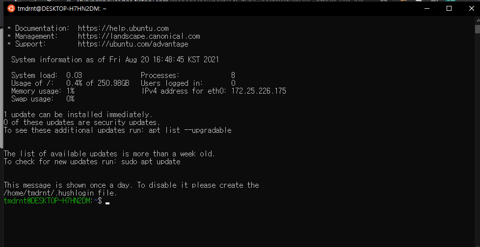 | WSL2 Docker설치하기 (0) | 2021.08.20 |