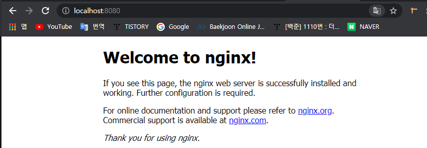 WindowTerminal 에 doker run --name nginx-test -d -p 8080:80 nginx:latest 입력