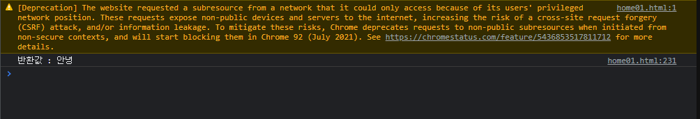 console.log("반환값 : " +httpRequest.response);