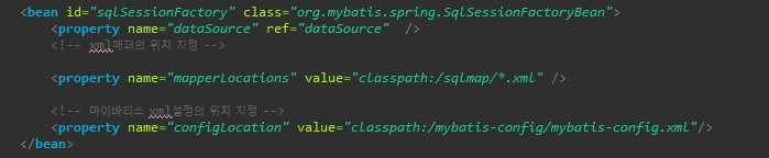 마이바티스를 이용해 xml형식으로 객체를 전달 하기위한 설정파일 지정경로,