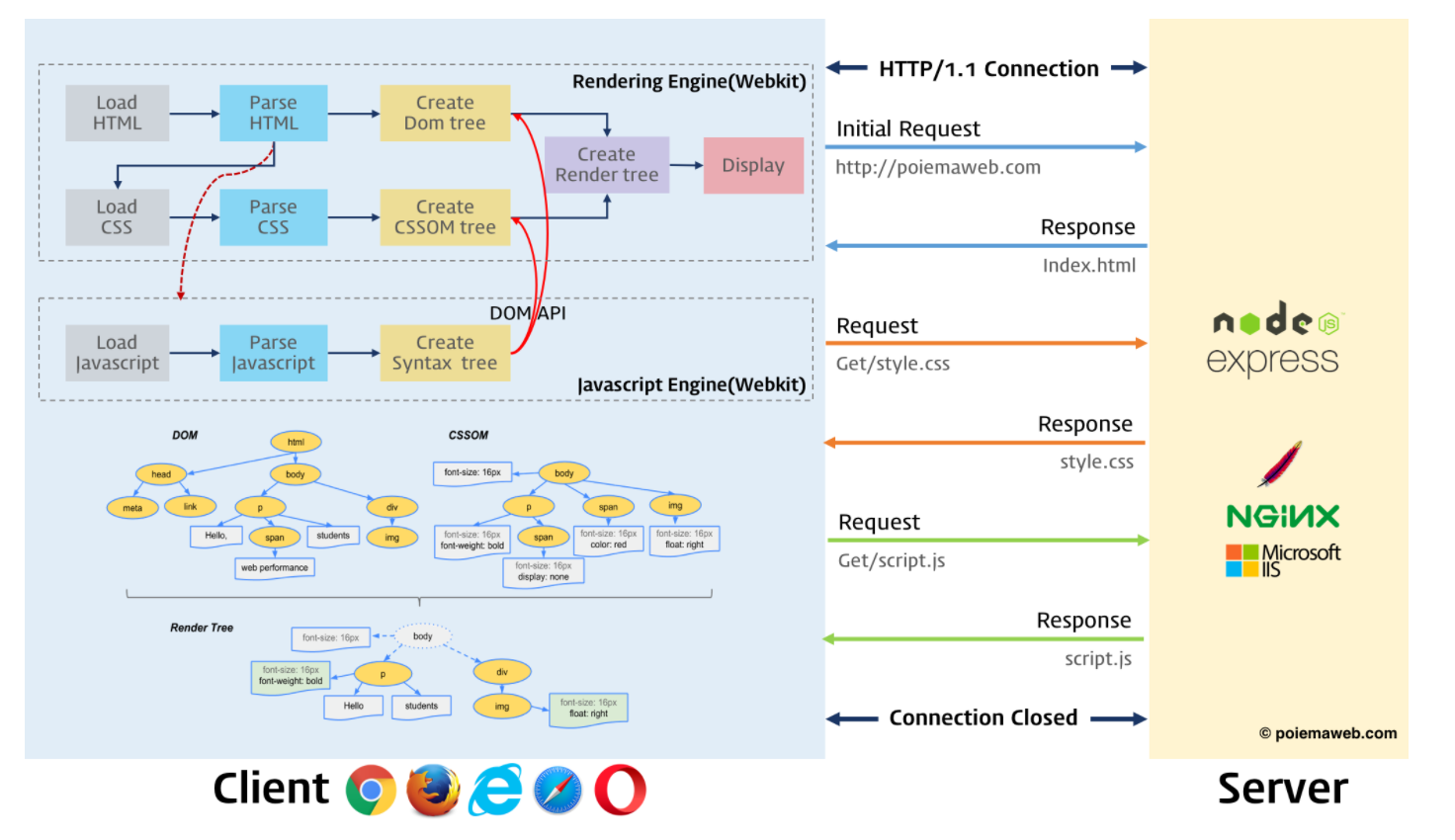 html을 dom로 css를 cssom로 파싱해서 위사진에있는